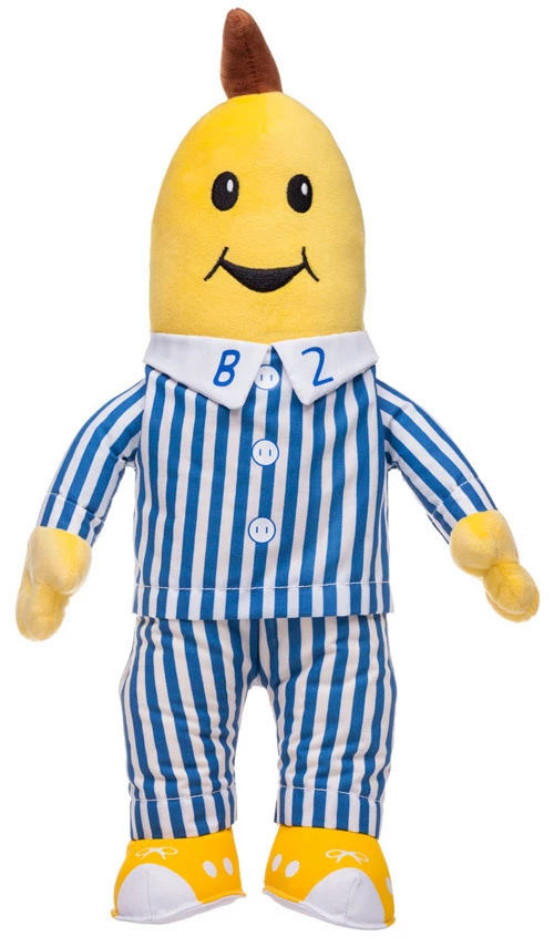 B2 talking plush toy. B1 sold separately. Squeeze my tummy to hear me talk. Features 5 classic Bananas in Pyjamas phrases. We’ll play with everyone! Jamamara! It’s making music time! It’s playing with teddies time! It’s sleep time! Official licenced product of the Australian Broadcasting Corporation.