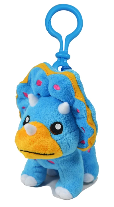 Dino Mights Tricerotps Clip On Plush Toy 8cm Blue